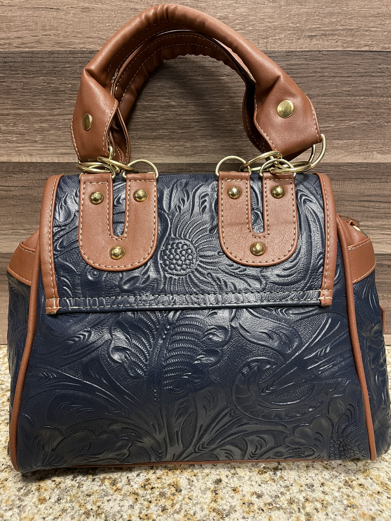 This leather handbag is both stylish and practical. It measures approximately 11 inches wide, 7 inches tall, and 7 inches deep. It comes with a zipper under a cover with a metal clasp, so you can keep your things safe. There's also a zippered pocket inside the bag to help you organize your stuff. You can convert this purse into a crossbody bag with the included straps, depending on how you want to carry it. This purse is handmade in Mexico from high-quality leather.